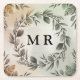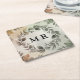Customizable Initials Wreath - Elegant Monogram Square Paper Coaster