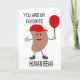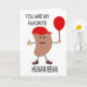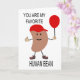 This card has a message on the inside that can be changed to suit your needs. The design on the front of the card is of a bean wearing a baseball cap and holding a balloon.