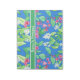 A very pretty and customizable Notepad or Jotter with a pattern of creamy white Mock Orange Blossom and bright pink Weigela on a sky blue background, from a handpainted watercolour design by Judy Adamson.
