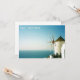 Watercolour-style image of a windmill on the edge of the caldera in Oia, on the Greek island of Santorini