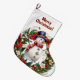 A Christmas stocking is a festive sock-shaped bag that people hang up during the holiday season, usually by the fireplace or at the foot of their bed. It's traditionally filled with small gifts, candies, and treats on Christmas Eve. The idea is that Santa Claus comes and fills the stockings with goodies for everyone to enjoy on Christmas morning. They come in all sorts of designs, colors, and sizes, often personalized with names or decorated with holiday themes like snowflakes, reindeer, or Santa himself. It's a fun and charming tradition that adds a little extra magic to Christmas!