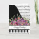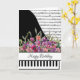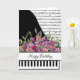 cute piano with sheet music, edit greeting, and your own accent piece (floral, etc.)