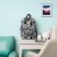 Fresh backpack design features a monogrammed tropical leaf pattern in black and white with grey accents. The flowers repeat on the front, top, and sides. A stylish template with an accent on the front pocket in black and white allows for customisation with one or two initials. Message me via Zazzle if you want to change another colour.