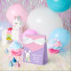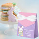 Customize this cute Happy Easter Bunny party favor box with your own personalized text with your child's name in white script. This adorable bunny rabbit sits in a pretty Easter basket on lovely pink and purple gift boxes for children.