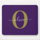 Customized Monogram Script Name Purple White Gold Mouse Pad