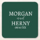 CUSTOMIZED NAME STYLISH MODERN DARK GREEN WEDDING SQUARE PAPER COASTER