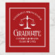 This custom red law school graduation party wine label features white typography for a class of 2026 graduate. Customize with your graduating year under the scales of justice for great personalized lawyer or attorney favor.