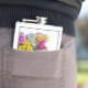 The flask itself is fine. It’s a cheap flask, obviously bought in bulk, however am prepared to overlook that. Given that it is a personalized item, I would have liked to have seen gift boxing instead of the generic packaging. Terrible printing, and/or quality. It’s a cheap, tacky vinyl. It is not cut straight and is also applied in a way that it is overhanging the bottom, causing the glue to catch on items and it will eventually roll and tear, damaging the wrap.