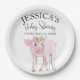 Cut Piggy Watercolor Baby Shower Boho Girl Paper Plate