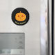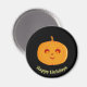 Cute pumpkin face on black background round magnet. Text can be personalised.
