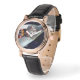 I loved the ability of designing the watch face, I chose the men’s style as I like a “big watch look”, the leather strap is good quality. Easy to read watch with illuminated hands, great for 24/7 use. I am very pleased with the end result of my design. I have no hesitation in recommending the individualisation of an item. The customisation tools are easy to utilise, you won’t be disappointed. Definitely 5 stars