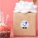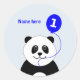 A cute sticker ready for you to personalize for the birthday child by adding their name. This smiling panda has a blue 1st birthday balloon matching the name, all on a pale blue background.