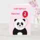 Add a name: This cute panda card has a soft pink background and a bright red first birthday balloon. It is ready for you to personalize with the birthday child's name. There is a red birthday balloon inside as well. The message inside can be personalized too, and currently reads "Have a wonderful first birthday, full of love and fun".