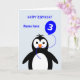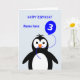 Add a name: This third birthday card is ready for you to personalise with the birthday child's name. It features a cute penguin with a blue birthday balloon on a pale blue background. There is a further birthday balloon inside.