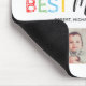 Cute mummy picture mousepad featuring a plain white background that can be changed to any colour, 8 family photo collage, a colourful "best mum ever" typographic design, and the kids names.