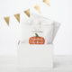 These cute fall baby shower favour bags features a cute pumpkin and the words "A LITTLE PUMPKIN IS ON THE WAY!" in brown and the name of the mum-to-be and the baby shower date in white. Customise all the wording on this design.