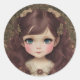Cute Adorable Vintage Style Chibi Kawaii Girl Art Classic Round Sticker
