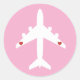 Cute Aeroplane Hearts Girl Pilot Pink Personalised Classic Round Sticker