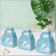 A favour box featuring a cute little aeroplane flying through clouds on a blue background with colourful stars, personalised with your thank you message to guests for attending the baby shower.