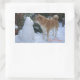 cute akita kissing snowman snow dog at christmas rectangular sticker