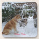 The cute akita dog photo on this seasonal coaster is a japanese akita sitting in the thick December snow watching a snowman akita, the real life cute akita is looking at the snow akita and wanting to play, I think she wishes the akita is real and not an akita made of snow. The snowman akita has a funny expression on his face, but… I think anyone would look like he does if they’d been sitting in the cold snow for hours. The cute akita girl wanting to play with the snowman is named Asia, she's a rescue akita. This funny akita picture makes a cute Christmas coaster that will look nice alongside the other akita snowman products. This cute image is suitable for any time of year but especially nice or the christmas table. The title of this akita image is "Please Play With Me."