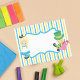 Cute Alice in Wonderland post it notes with a fun childrens book theme. Little girl Alice in her blue dress and the Mad Hatter sit on pretty blue yellow striped yard paper.