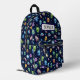 Blast off into adventure with this adorable backpack featuring a playful seamless pattern of cute aliens, rockets, moons, stars, and tiny UFOs scattered across a magical galaxy sky. Bright, colorful, and full of cosmic charm, this fun space-themed backpack is perfect for school, travel, and little explorers who love outer space. A whimsical design that makes back-to-school extra fun, especially when personalized.