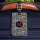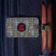 This Cute Alien luggage tag has a cute aliens sweater pattern based off of the theme of classic Fair Isle knitted designs. The pattern is of grey and black circles and diamond stripes. Each shape has different cute retro alien motifs in it. You have cute retro robot, UFO abduction, a space ship with green alien, a grey alien head, solar system, an alien plant, retro ray gun and a star fighter. In-between the pattern are moons, and stars. On the front in matching colour is where you can put your initial. On the back you can personalise this with your information or delete the info for it to be blank.