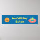 Welcome children guests over for an outer space adventure with this cute outer space party banner! This birthday party banner poster comes with a cute space ship flying among the galaxy of stars and planets and a cute and happy green alien on board. The alien has a heart shape antennas so it comes in peace and is trying to make friends! Great for space themed kids parties!
