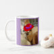 Our Cute Alpaca mugs have an alpaca wearing a red hat on both sides of the mug. The mugs are fully customisable so you can change the background colour, photo, or add text.