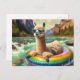 Cute Alpaca on a Rainbow Colour Float Postcard