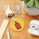 A cute red chilli pepper with a fiery explosive background design on the red and green hot sauce bottle. The words read "Always Hot".