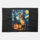 Cute American Staffordshire Terrier Dog Halloween Jack O Lantern Pumpkin Face Starry Night Van Gogh Style