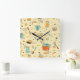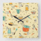 Cute and Colourful Kitchen Utensils Square Wall Clock