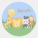Cartoon design of cute and colourful safari animals consisting of giraffe, zebra, lion, and monkey hiding among the tall grass. An adorable safari and jungle theme design that is fun and cheerful and attractive for kids and encourage their love for animals. Personalise easily with child's name.