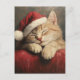 Celebrate the festive season with this Christmas cat postcard, featuring a heartwarming image of a sleeping kitten wearing a classic Santa hat. The rich, detailed brushstrokes of this oil painting-style artwork bring the design to life, creating a cosy and nostalgic holiday feel. Perfect for spreading cheer, decorating your home, or gifting to loved ones, this holiday cat illustration will make a delightful addition to any collection.