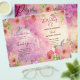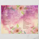 Fresh and youthful style. Cute and elegant floral wedding program. Pink handmade watercolor wild roses on pink watercolor background.