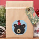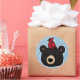 This simple, adorable illustration features a cartoon black bear head with a cardinal perched on top against a blue polka dot background. So cute, it appeals to children and nature loving adults alike! A great gift for both girls and boys.