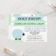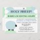 This is a cute shower invitation for a baby and mother to be. Except for the sheep image at the bottom and the blue and green stripes on top, everything else is customisable. You can change the text to announce the name of the person being honoured, the date, the address, contact information and where the mother to be is registered. Simply click on the orange customise button and you can start typing in your own information. The design is on both sides of the invitation and you can enter text on both sides.