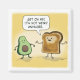 Here's a cute and funny design featuring a piece of nicely browned toast encouraging an avocado to hop aboard! Because avocado toast is no longer weird!