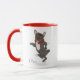 Cute and Funny French Bulldog Mug featuring a happy dancing Frenchie. Easy to customise with your name.