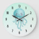 Cute and Happy Blue-Green Jellyfish Large Clock