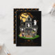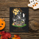 Get ready for a delightful and eerie Halloween celebration with our charming haunted house party invitation! This whimsical design showcases an adorable haunted house surrounded by playful ghosts, fluttering bats, a mischievous black cat, watchful ravens, and two little witches, all set against a black background. On the reverse side, you'll find a fun pattern featuring the word 'BOO!' in orange in bold letters on a striking black background, adding an extra touch of spookiness to your festive gathering. The cover has been designed using some assets from Freepik.com