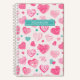 Cute and colourful pattern spiral notebook with personalised name. Perfect for diary, life journal, sketchbook, recipe book or just taking notes in class. Sweet Valentine's Day pattern with kawaii love and heart. Great for kids and teen girls. Make a great gift for back to school celebration.