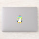 Cute and trendy, this sticker is perfect for hobbies and winter crafts. This design features a penguin wearing a green, blue and red winter cap.