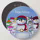 Cute and whimsical snowmen are chilling together as they keep each other nice and cold on a winter day. All the snowmen are wearing colourful and creative hats and scarves. Personalise this whimsical snowmen button by adding your own text, or deleting it to leave it blank. Based on an original art piece by © One Artsy Momma.