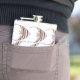 The flask itself is fine. It’s a cheap flask, obviously bought in bulk, however am prepared to overlook that. Given that it is a personalized item, I would have liked to have seen gift boxing instead of the generic packaging. Terrible printing, and/or quality. It’s a cheap, tacky vinyl. It is not cut straight and is also applied in a way that it is overhanging the bottom, causing the glue to catch on items and it will eventually roll and tear, damaging the wrap.