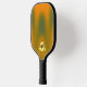 Original yellow baby chicken cartoon against a green and orange gradient style background on back. The text style/font, colour and size can be changed to suit. The front of the pickleball paddle has the gradient style background with a smaller copy of the chicken towards the handle, leaving plenty of room for any further personalisation you might want to make.