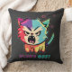 Cute angry cat hissing Fluff Off. Furious kitten with open mouth showing sharp teeth.