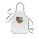 This apron is made with a durable fabric! My grandson LOVES it! The shape provides great coverage to protect clothes from paint spatters, etc. The print quality is excellent! The detailed lines of the dragon drawings are printed in a crisp, clean manner.